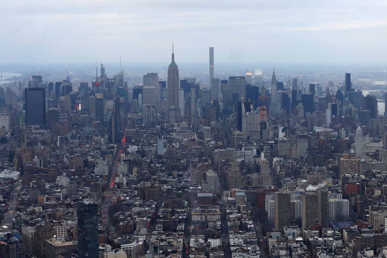 The Manhattan skyline as seen from the One World Observatory.